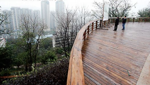 4個(gè)觀景平臺(tái)面積共4521平方米,由花崗巖或防腐木鋪裝,利用城市制高點(diǎn),體現(xiàn)城市陽(yáng)臺(tái)理念,游人可在公園內(nèi)飽覽紅巖村、嘉陵江及江北鴻恩寺盛景。