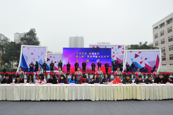 市旅游局長劉旗宣布2016(第八屆)黃桷坪新年藝術(shù)節(jié)正式開幕。