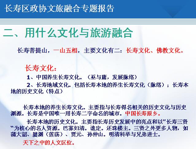 為政協(xié)重慶市長壽區(qū)委員會作文化與旅游融合專題報告